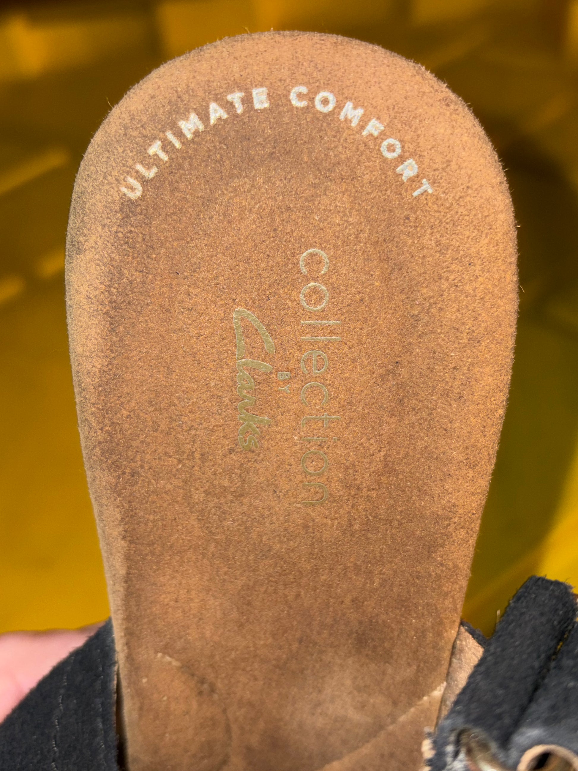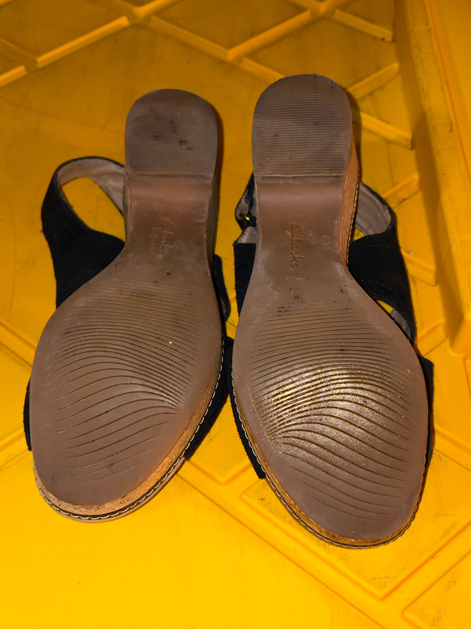 Clarks Ultimate Comfort Navy Suede Wedge Sandals Women’s Slingback Cork Heel