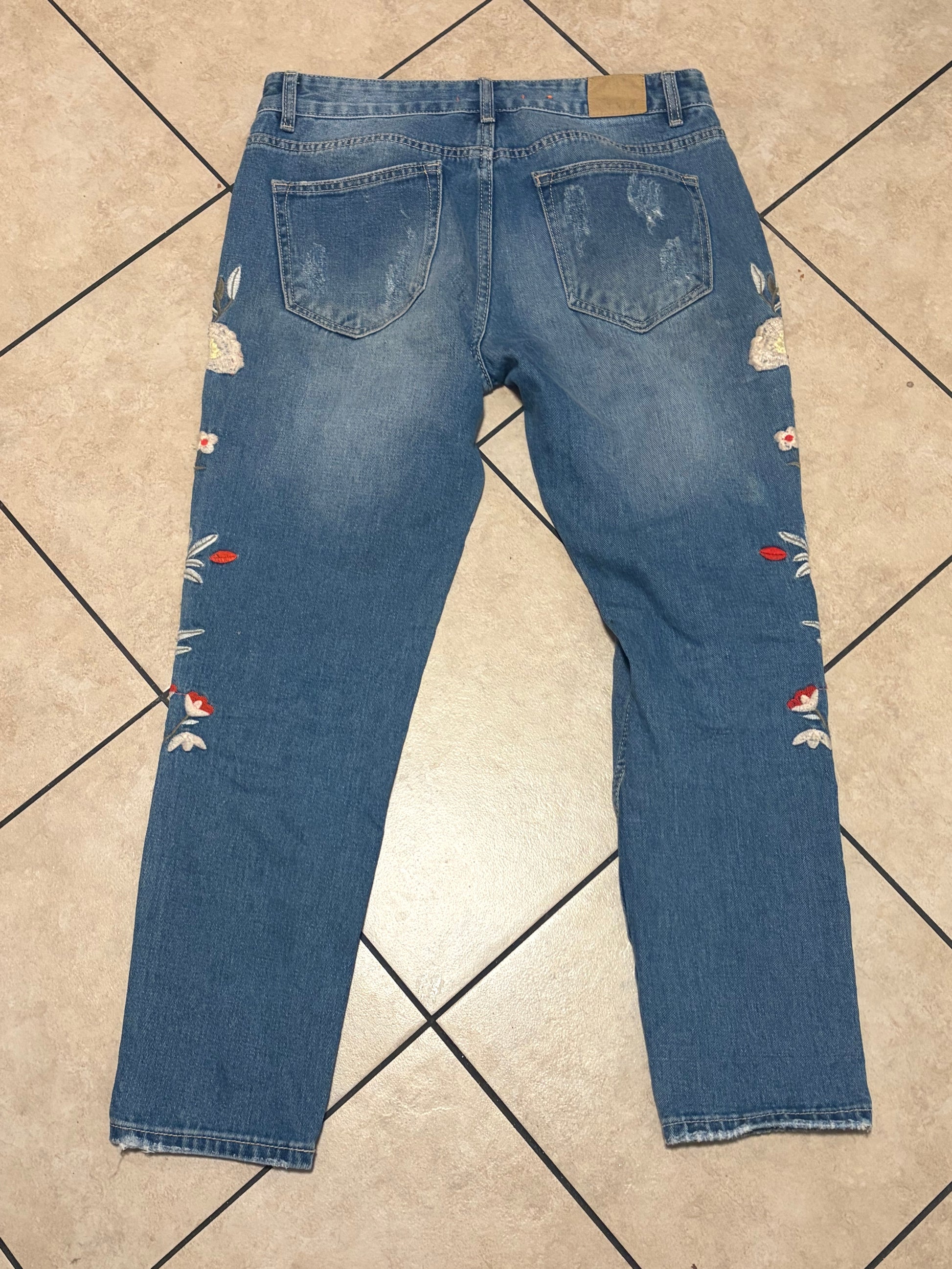 O2 Denim Collection Hand Embroidered Floral Jeans Womens 10