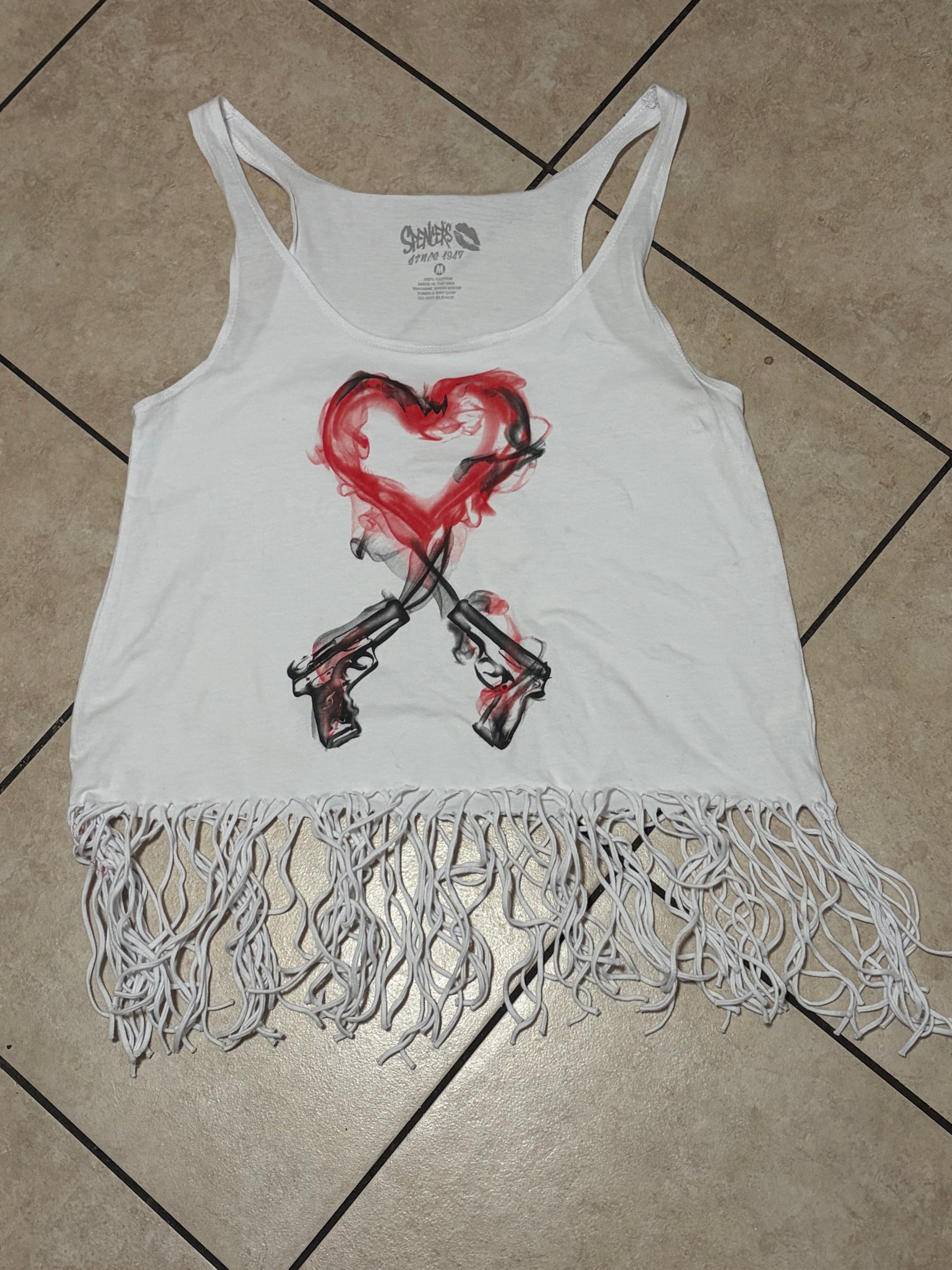Y2K Spencer’s Guns Heart Fringe Tank Top Medium Emo Goth Crop